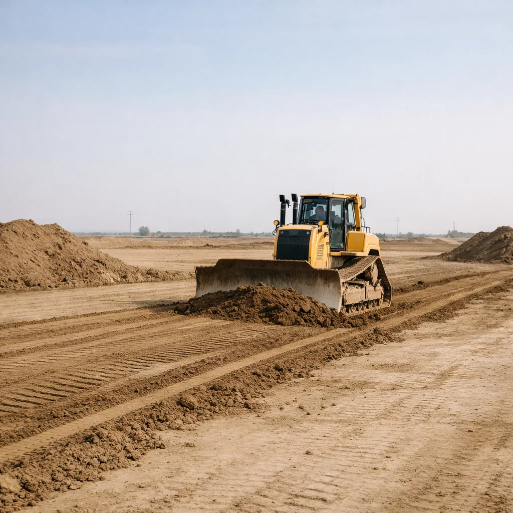 Movimiento y nivelación de tierras para la preparación de una obra civil de gran envergadura.